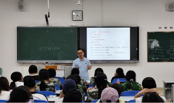 曹正勇向同学们详细介绍了个人荣誉与集体荣誉评选的类别与条件。他从国家奖学金、国家励志奖学金、国家助学金、筑梦教学金、张武生奖学金、退役士兵国家助学金、贵州省脱贫家庭学生扶贫专项助学金、学费减免、在校生生活补贴、勤工助学、临时困难补助等十一个方面详解解读了学校奖、助、贷、免、补等相关政策。