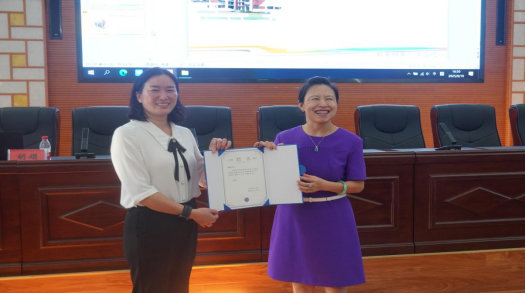 讲座的最后,马克思主义学院院长何志玉向胡娟校长颁发了“马克思主义学院思想政治教育专业实践课程校外导师”聘任证书。