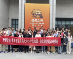 为深入学习贯彻习近平新时代中国特色社会主义思想,全面落实党的二十大精神,推动大中小学思政课一体化建设走深走实,10月12日至10月18日,由我校联合贵阳市教育局主办、华中师范大学承办的“贵州省大中小学思政课一体化建设培训”圆满结束,共44名贵阳贵安中小学思政课教师参加了此次培训。本次研修班通过政策解读、理论讲授、教学示范、实地研学、经验交流等多种形式,助力思政课教师提升育人能力,筑牢信仰根基。