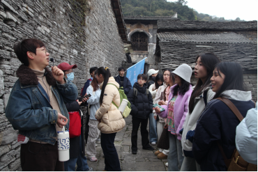 本次活动依托云峰屯堡独特的明代军事文化与屯堡建筑遗存,将课堂延伸至历史文化现场。活动中,学院党委副书记黄明珠结合自身参与云峰屯堡本寨古建筑修复项目的经历,为学生们生动讲解了屯堡的历史渊源、军事防御功能与文化价值。